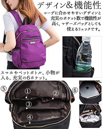 baby-mine (ベイビーマイン) レディース ナイロン リュック デイパック マザーズバッグ シンプル 撥水 軽量 丈夫 通勤 通学 (パープル)