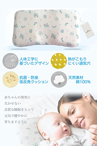 baby-mine (ベイビーマイン) ベビー枕 向き癖防止 斜頭 絶壁頭 変形 猫背 寝姿を矯正 夜泣き 寝ハゲ対策 汗取り 快眠 低反発ピロー 100% 綿 無添加 男女兼用 通気枕 ベビーまくら 出産祝い (こぐま)