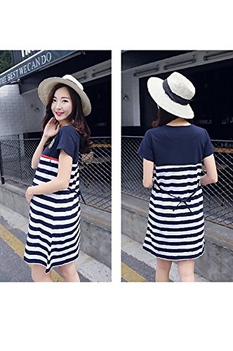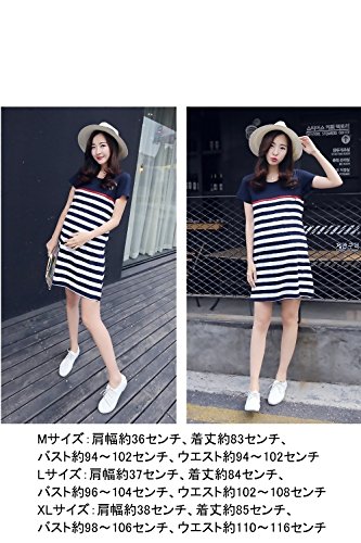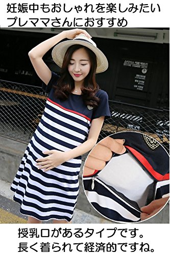 baby-mine(ベイビーマイン) マタニティワンピース 授乳服 ワンピース マタニティウェア ボーダー マリン 半袖 (L, 紺)