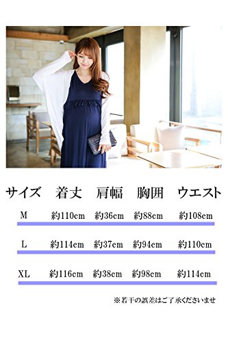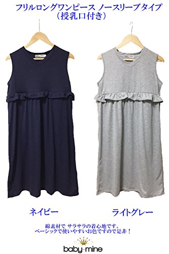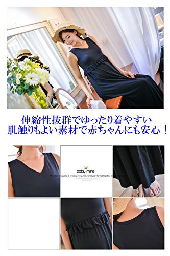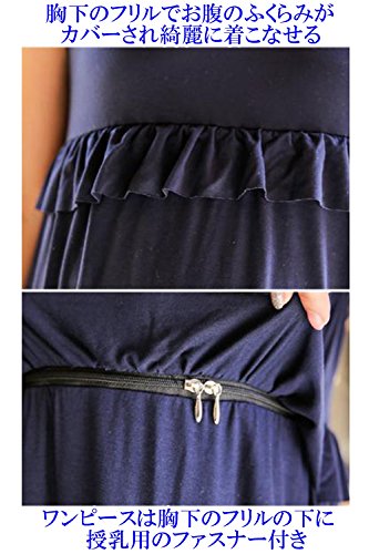 baby-mine ロングワンピース ノースリーブ マタニティ 授乳服 フリル マキシワンピース 部屋着 パジャマ 授乳口付き (XL, ネイビー)