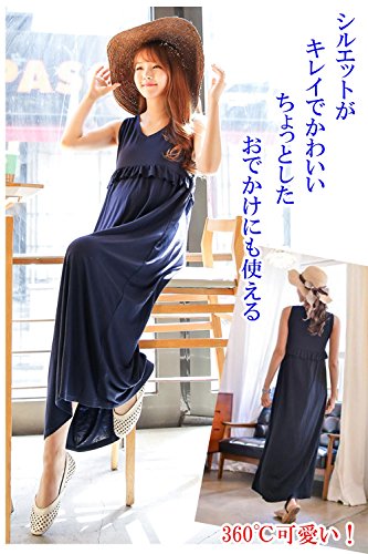 - かわいいフリルのデザインで体型カバーができ、シルエットは女性らしいものに。 マタニティや部屋着、ビーチなどで着るなど、1枚あるといろいろと重宝するワンピースです。