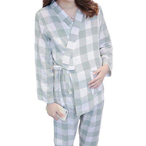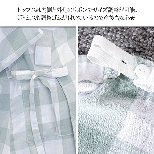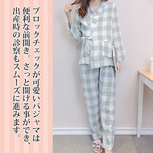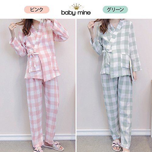 Baby-mine(ベイビーマイン) マタニティー パジャマ ルームウエア 前開き 長袖 カシュクール コットンガーゼ ブロックチェック ピンク グリーン パステルカラー (XL, グリーン)