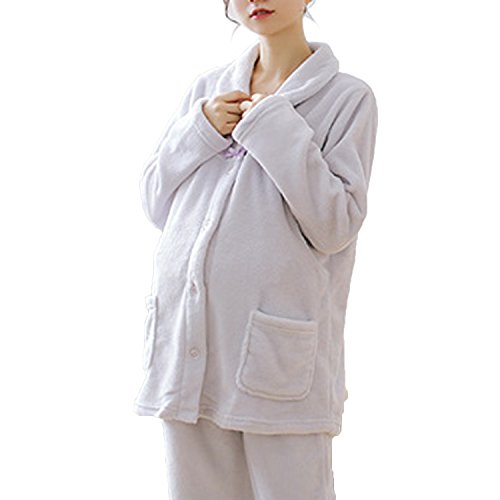 Baby-mine (ベイビーマイン) マタニティー パジャマ ルームウェア ベルベット なめらか ふわふわ 長袖 上下セット 前開き リボン (L, パープル)
