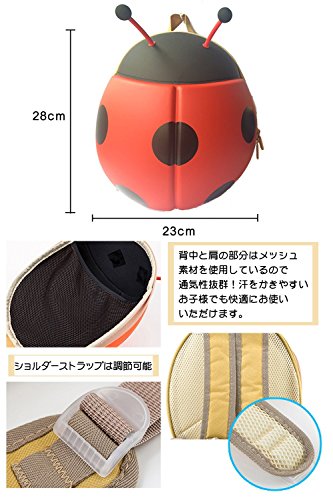 baby-mine (ベイビーマイン) リュック リュックサック 子供用 キッズ 幼稚園 保育園 通学 カバン バックパック 散歩 遠足 てんとう虫 男の子 女の子 (1.レッド)