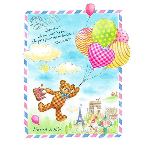 カバーデザインは、パリの街を風船で旅するくまさんのイメージです。カバーにはフランス語で手書き文字のメッセージ。