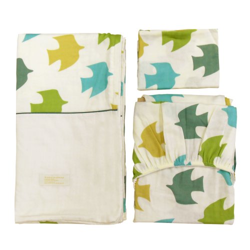 baby.e-sleep(ベビーイースリープ)×QUARTER REPORT ピジョンダブルガーゼカバーセット(エメラルド ダブルガーゼ 掛カバー+フィットシーツ+ピロケース)