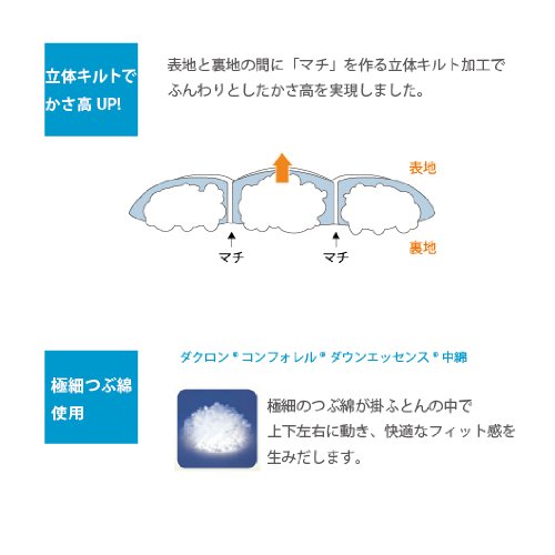 まるで高級の羽毛ふとんのような保温性と、ふんわりしたかさ高を実現。