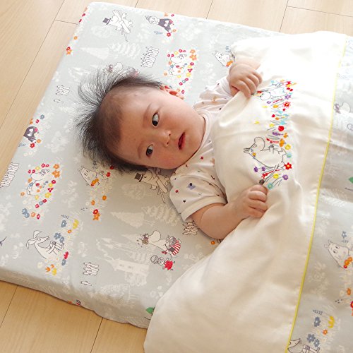 ムーミンたちがやさしいカラーでプリントされたベビーフィットシーツ(敷き布団カバー)。 綿100%のダブルガーゼカバーは、ふんわり柔らかくて赤ちゃんのお肌に馴染みやすい素材。全周ゴムのフィットシーツタイプなので、敷きふとんにぴったりフィット。付け外しも簡単です。