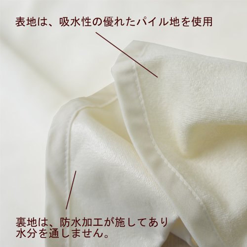 表地は、吸水性の優れたパイル地を使用。 寝汗やおねしょをしっかりキャッチします。