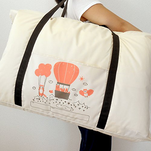 丈夫なナイロン製で耐久性にすぐれています。取っ手も余裕のあるサイズで、肩にかけやすく両手をあけられます。かぶせ式のフタ付きで汚れから中身を守り、ファスナー式なのでしっかりと開け閉めできます。外側には便利な収納ポケットと名前欄が付いておりとっても便利です。幅70cm×長さ120cmの敷きふとんが3つ折りでぴったり収まります.幅75cm×高さ45cm×マチ15cm