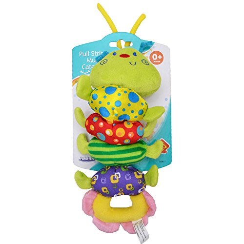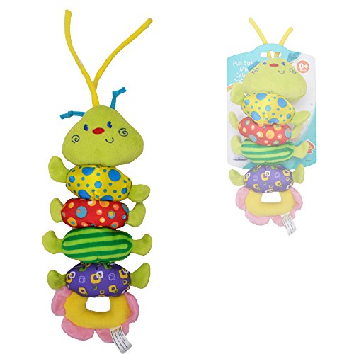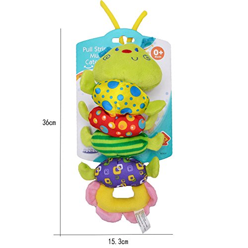 - 5. カラフルな虫がぶらさげて、引いたり、はずませると、音が出たようになって、赤ちゃんの音の感知を促進します。