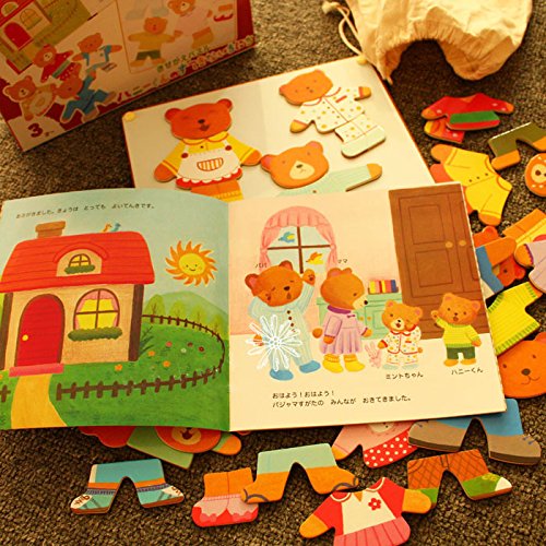 Happytime 大人気の熊の着せ替えセット マグネット付き 木のおもちゃ 絵本付き パズル おままごと ごっこ遊び 知育 玩具
