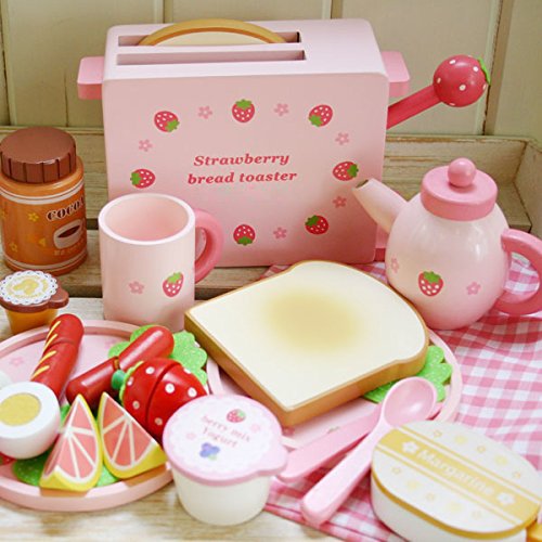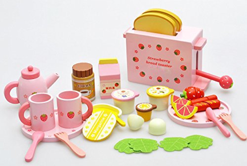 【セット内容】トースター、ポット、クリーム、パレットナイフ、ミルク、カカオ、ソーセージ、卵、野菜、グレ—プフル—ツ、イチゴ、トースト*2、フォーク*2、スプーン*2、お皿*2、カップ*2、ヨーグルト*2