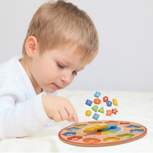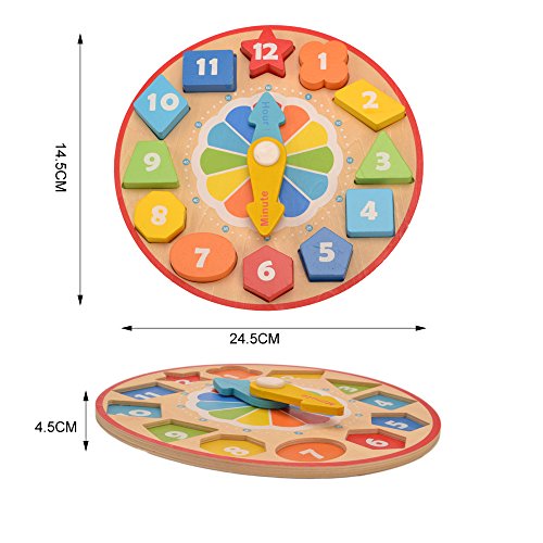 Happytime 時計パズル 木製の玩具 カラフルな数字の積み木 数字や時間や色や図形についての認識 子ども キッズ用 おもちゃ 知育玩具