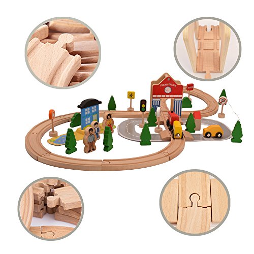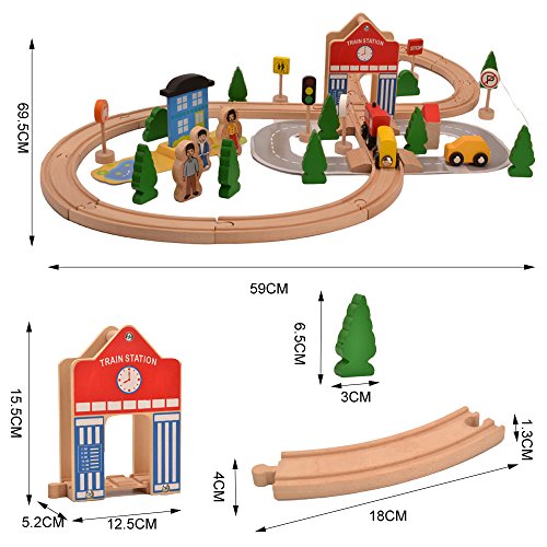 Happytime コースター組み立て GOGO 人気のレールカー カラフルなブロックおもちゃ 子ども 木製 知育玩具