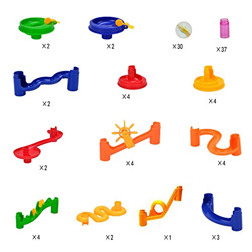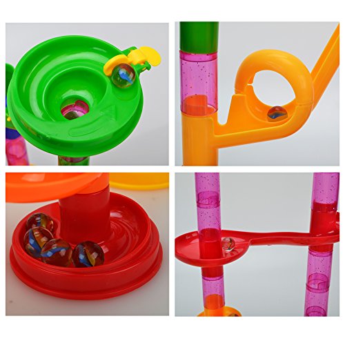 - 2.ビー玉の転がる方向やスピードはパーツを組み合わせた様々なコースによって変わります。透明なパーツですので、ボールが転がっていく様子を楽しめます。