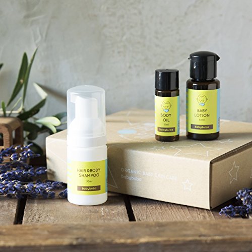 babybuba (ベビーブーバ) 【 ベビー オーガニック シャンプー & ローション & オイル 】 しっとり保湿 ベビースキンケア 旅行やギフトに最適 日本産 全身 リラックス効果 ボックス付 (0ヵ月~) 【トライアルセット】