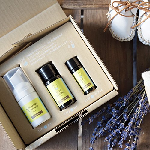 内容:ベビーシャンプー30ml、ベビーローション 33ml、ボディオイル15ml(オリジナルボックス仕様)