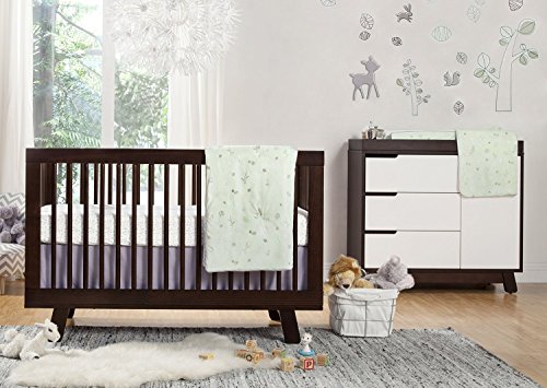 Babyletto Tranquil Woods 5-Piece Crib Set with Sheet Skirt, Play Blanket, Pad Cover and Wall Decal