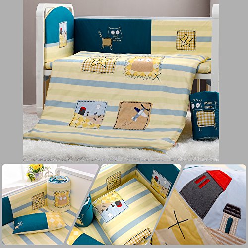 - サイズ:布団、布団カバー105*130cm;枕、枕カバー45*25cm;フィッティドシーツ120*68*8cm;ベッドガード60*40cm;サイトベッドガード120*30cm