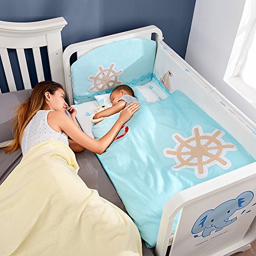 片側の柵を取り付けないままで大人のベットと並べて、子供と一緒に寝て面倒を見るのも便利!