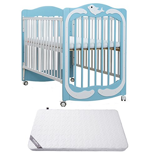 babysing ベビーベッド 0~2歳 子供 キッズ 3way ベビーサークル テーブル フェンス 揺りかご ソファ (ブルー-ホワイト+マットレス)