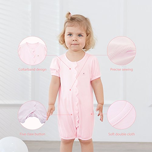 babysing ベビー服 ロンパース カバーオール 新生児 女の子 カバーオール ショートオール 前開き ピンク 綿100 0-12ヶ月 (59(0-3ヶ月))