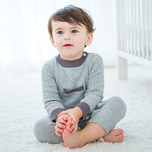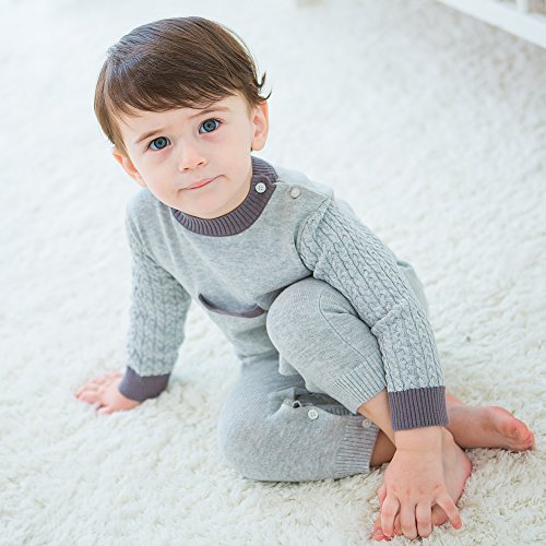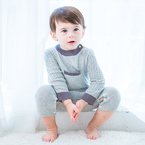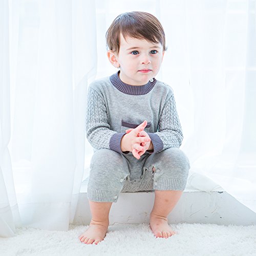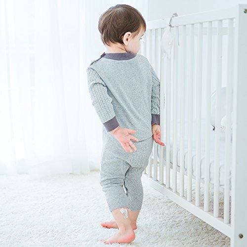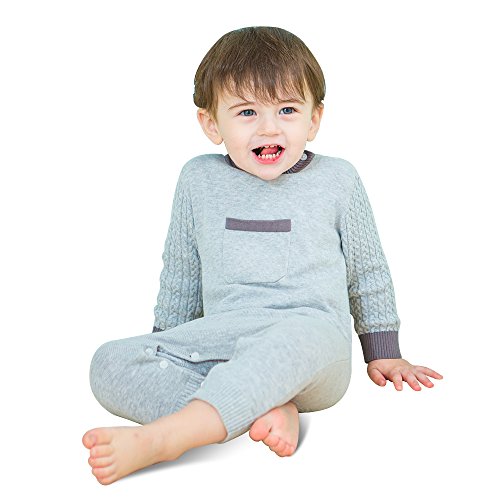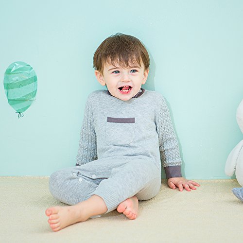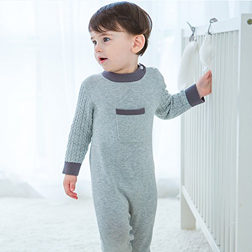 babysing ロンパース カバーオール ニットセーター ポケット付き コーマ糸 コットン (グレー, 90(12-24ヶ月))
