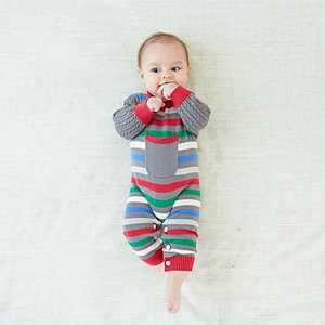 babysing ロンパース オールインワン ニットセーター コーマ糸 コットン (グレー, 90(12-24ヶ月))