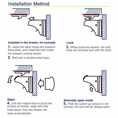 - 外から見えませんーロックはキャビネットまたは引き出しの中に取り付けるので子どもやゲストにも見えず、子どもに理想的な安全を提供しながら家を魅力的にします。