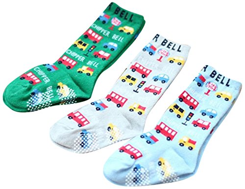 ( bambini )9㎝~15㎝ ベビー キッズ サイズ 靴下 3足セット 滑り止め 付 カラフル カラー … (くるま)