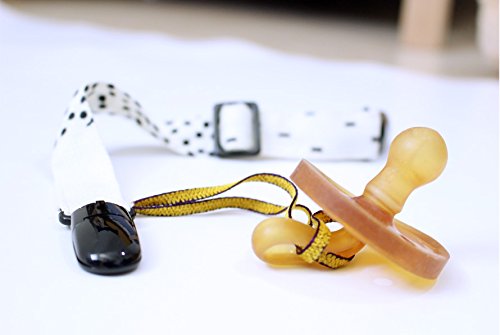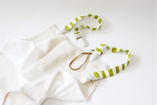 長さ調節可能な2本セットで、その内の1本にはおしゃぶりホルダー用のリボンがついています。