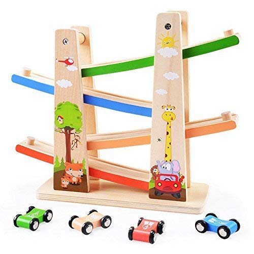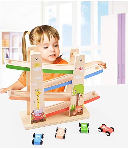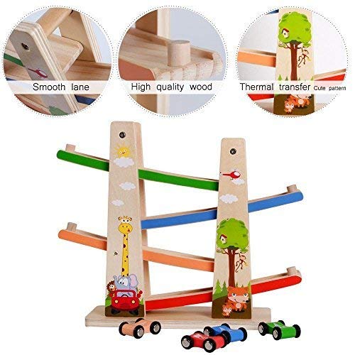 - 楽しみを誘う効果いっぱい:コロコロ転落する時、リズムがある音には、赤ちゃんの目を引くようにします。小さな車が軌道に乗っているのを見て楽しむように、子供たちを楽しませ、何時間も魅力的にする、何度も車を走したくなる。くるくるスロープは車4台付属、一人遊びも楽しいが、パパママや友達と車を競走することもできます。