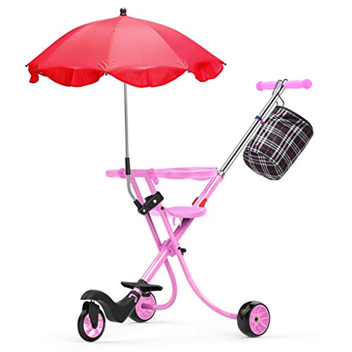 赤ちゃんの子供の三輪車のアルミニウム合金シンプルな軽量折りたたみピンク (色 : A)
