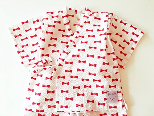 bebe couture(ベベクチュールベビー用品専門店)日本製ベビー甚平赤のリボン柄80cmコットン100%