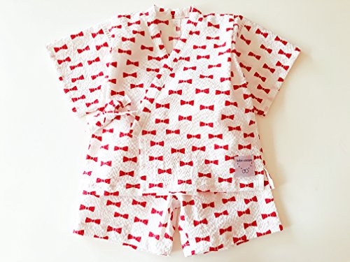 夏用の甚平です。 可愛い赤のリボン柄。お祝いとしても喜ばれます☆ さらっとした着心地の良い甚平用の布地を使用しました。 大人上質な布地で、赤ちゃんっぽくない所も魅力です。 ベビーもクールビズで暑い夏をのりきりましょう♪ 甚平は縁起も良いので ギフトにもお薦めです♪