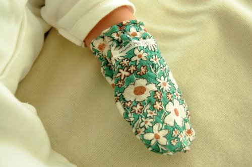 赤ちゃんは、爪が伸びるのが早いので、知らないうちに顔に爪によるひっかき傷を作っていることがあります。そんな傷から大切な赤ちゃんのお顔を守るためのミトンを作りました。柔らかなニット素材で出来ているので、安心してお使いいただけます。新生児から使えますが、手の良く動くようになる、1か月頃からがおすすめです。