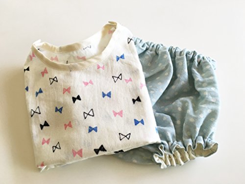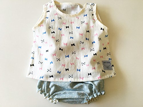 bebe couture(ベベクチュールベビー用品専門店)日本製・ブルマとトップスのセット・白のリボン柄70cm・コットンダブルガーゼ100%