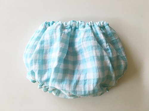 ダブルガーゼ素材のベビーブルマです。男の子にも女の子にも人気のガーリーでキュートな水色のギンガムチェック。柔らかい素材とゴムで、締め付け感がなく、履かせやすいパンツです。足を出して動きまわると免疫力も高まるので、お勧めです♪スカート下のオムツ隠しにも便利アイテム☆