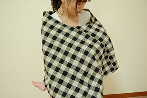 bebe couture(ベベクチュールベビー用品専門店)日本製・簡単かぶるだけ授乳カバー授乳ケープ麻の黒ギンガム・フリーサイズ
