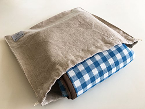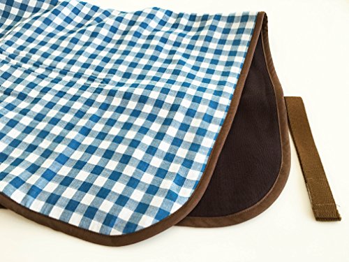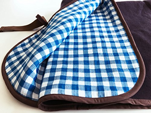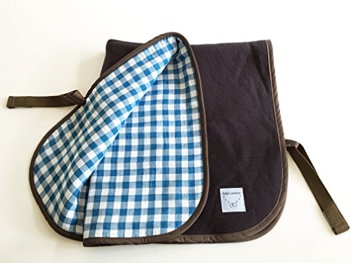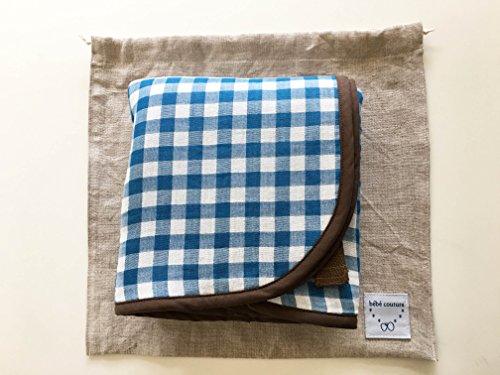 bebe couture(ベベクチュールベビー用品専門店)日本製ひざ掛け水色ギンガム・専用バッグ付き・コットンガーゼとニットのリバーシブル