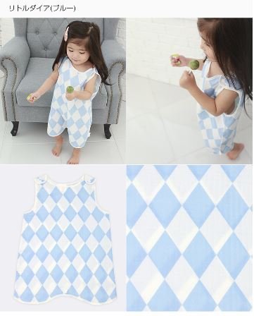 9色展開 綿100% 二重ガーゼ 春夏秋用スリーパー【bebenew01】 (M, リトルダイア(ブルー))