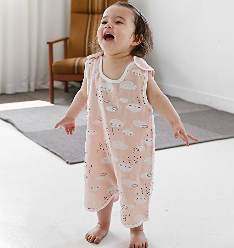 綿100% やわらか 二重ガーゼ 涼素材 スリーパー【bebenew03】 (M, クラウドピーチ)