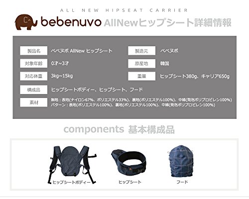 - 重量:ヒップシート380g、キャリア650g