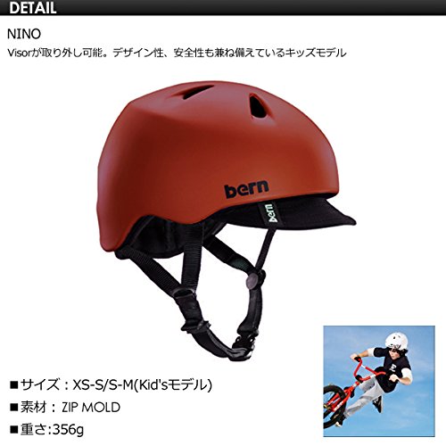bern バーン 子供用 ヘルメット スケボー スノボー 自転車 ジャパンフィット NINO MATTE-RED VISOR付 XS-S(48-51.5cm)