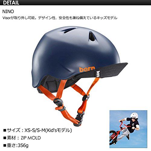 bern バーン 子供用 ヘルメット スケボー スノボー 自転車 ジャパンフィット NINO SATIN-NAVY VISOR付 XS-S(48-51.5cm)