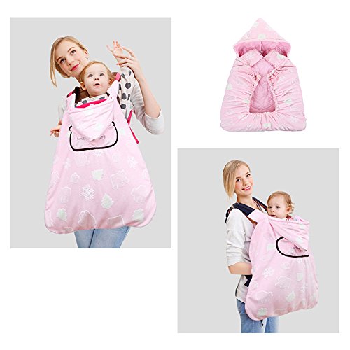 ベビーホッパー 抱っこひもとベビーカー用 防風・防水・防寒カバー 綿100%生地 人間工学設計 マジックテープ 子供お出かけ 出産祝い 小物入れポケット付き (ピンク)