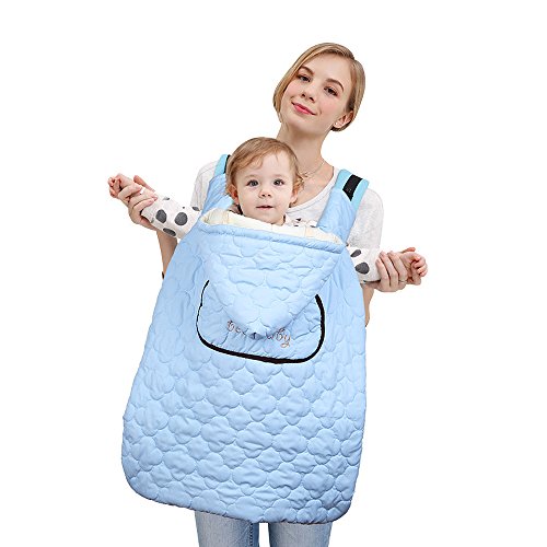 ベビーホッパー 抱っこひも 防風・防水・防寒カバー マジックテープ ゴムバンド 子供お出かけ 出産祝い ベビーキャリー (ブルー)