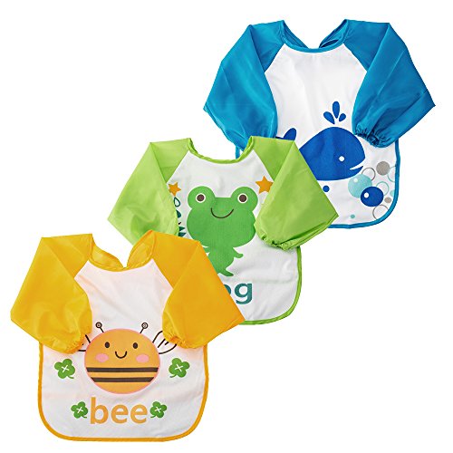 Bestjunly 防水 赤ちゃんのエプロン/スモック/前掛け長袖 食事用スタイ 食事用/離乳食/防水/お絵かき用/泥遊び用 六ヶ月から3歳のベビーに適用するのエプロン/スモック/ 3枚セット (3枚,第2組)