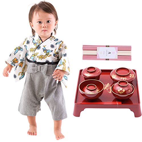 FUN fun (ファンファン) お食い初め 服 袴ロンパース 紅白麺 男の子 兜 50~60cmト